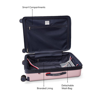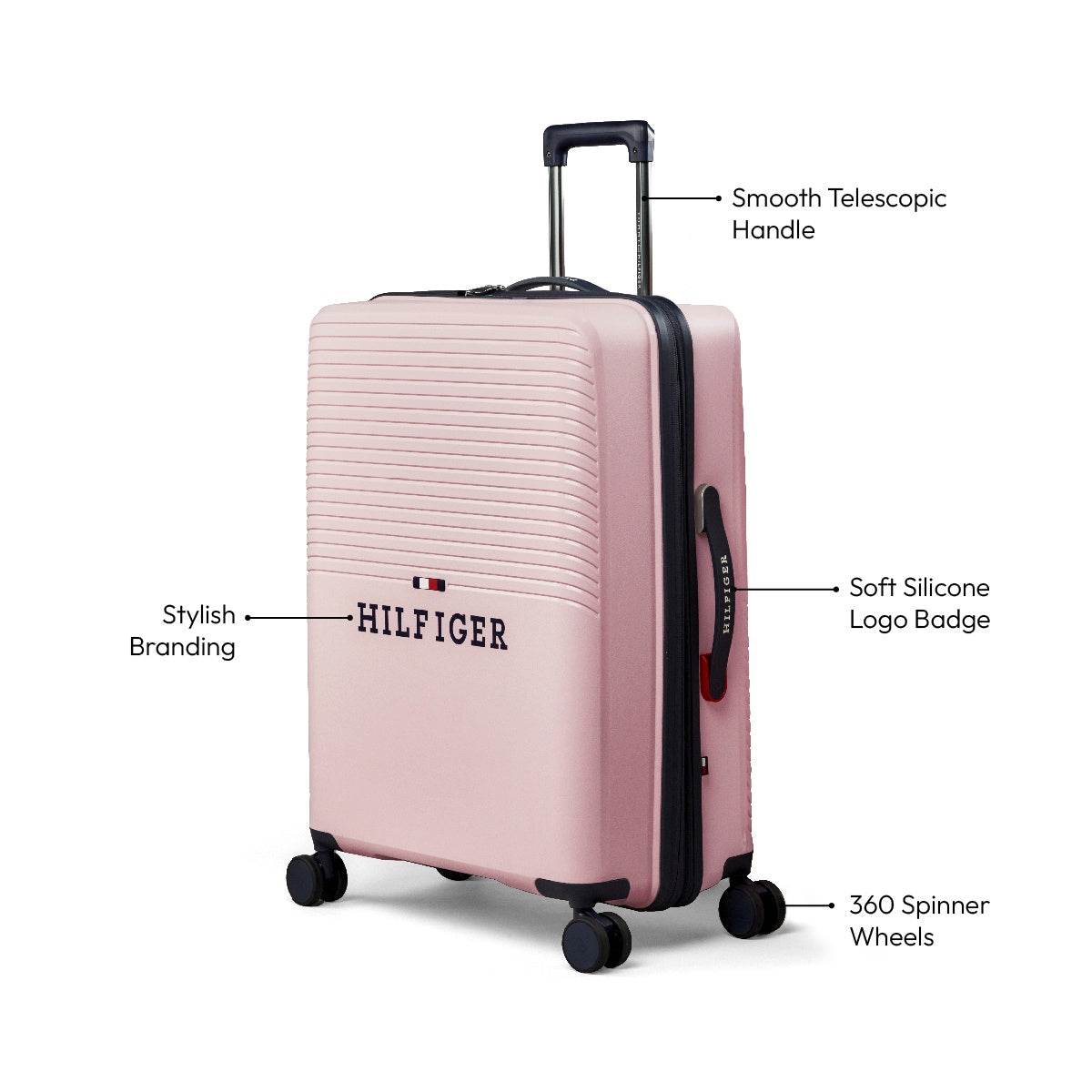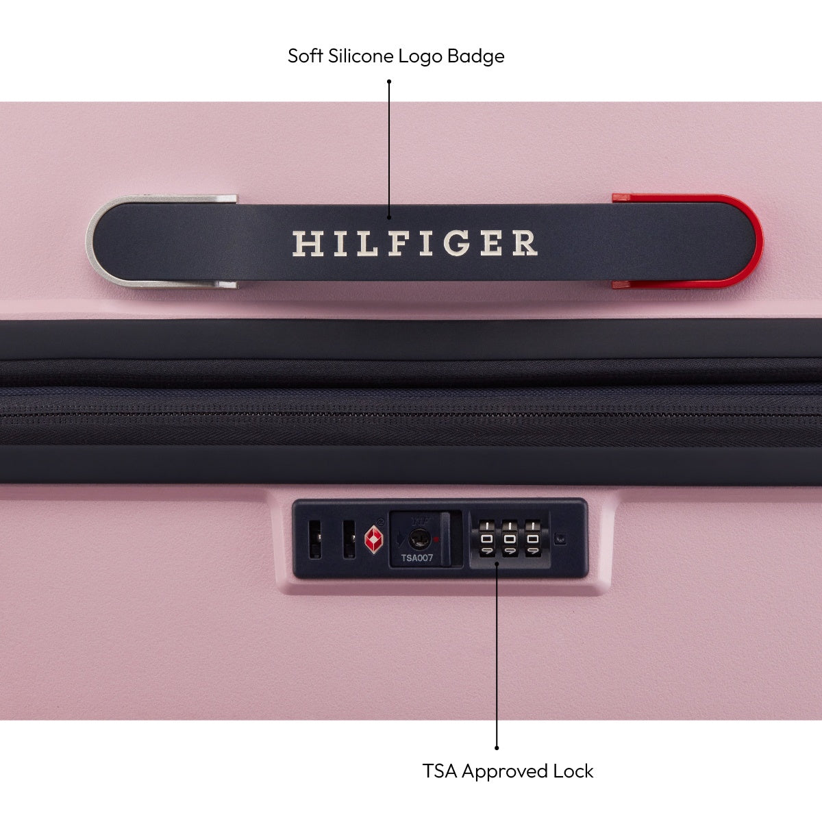 Signature Sophistication: Elevate your journeys with iconic Tommy Hilfiger styling — from the sleek UV-printed logo to the soft silicone RWB badge and contrast-accented grab handles that blend heritage with modern flair.