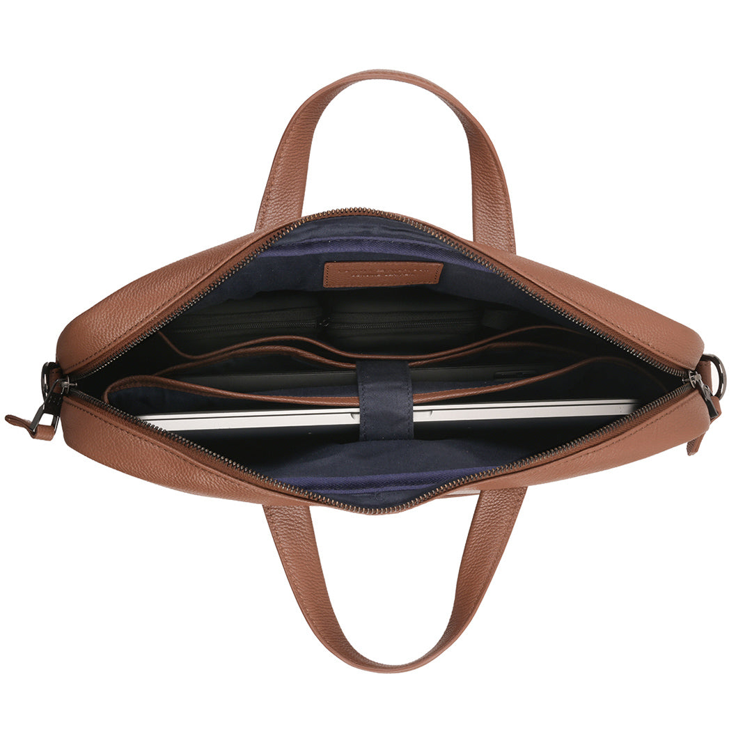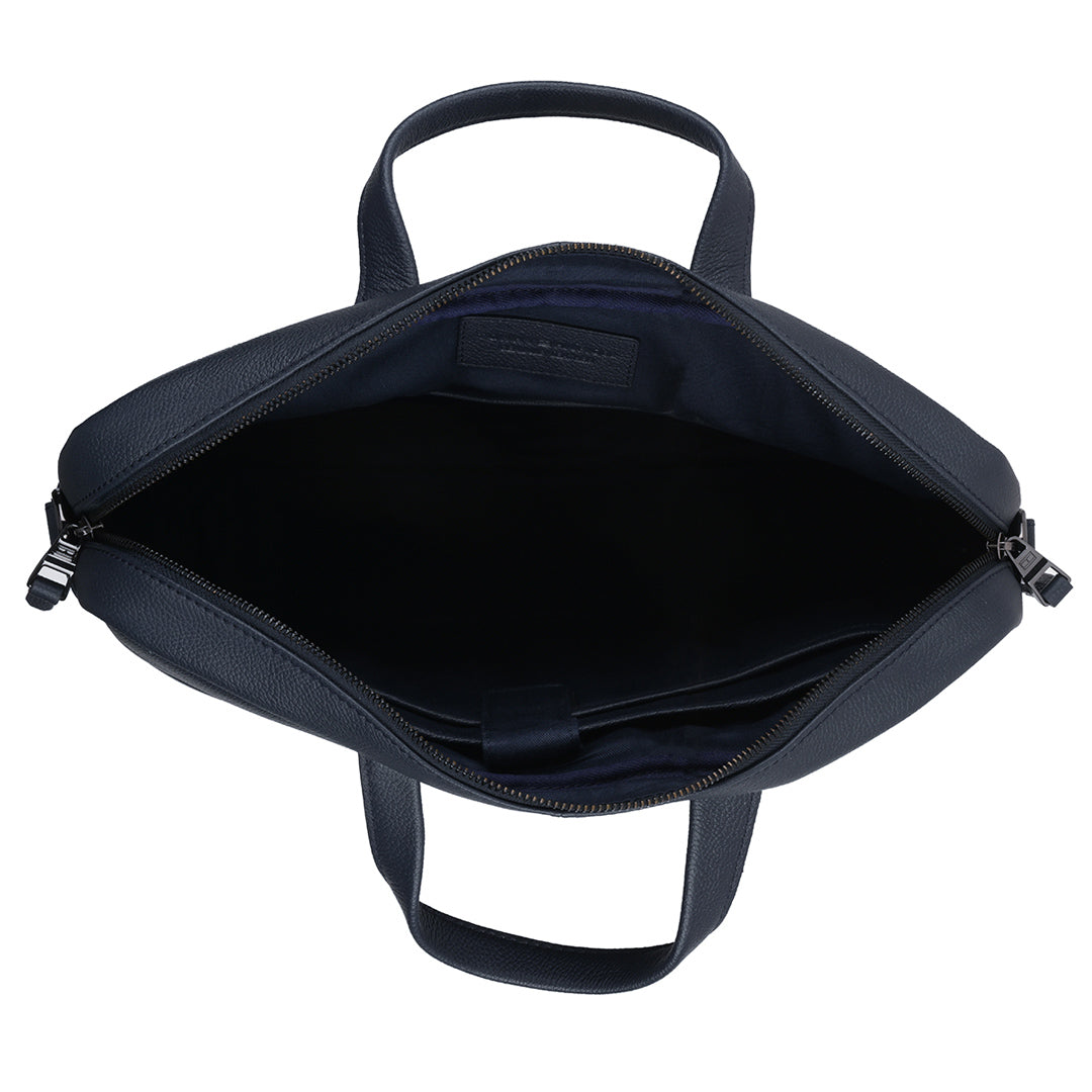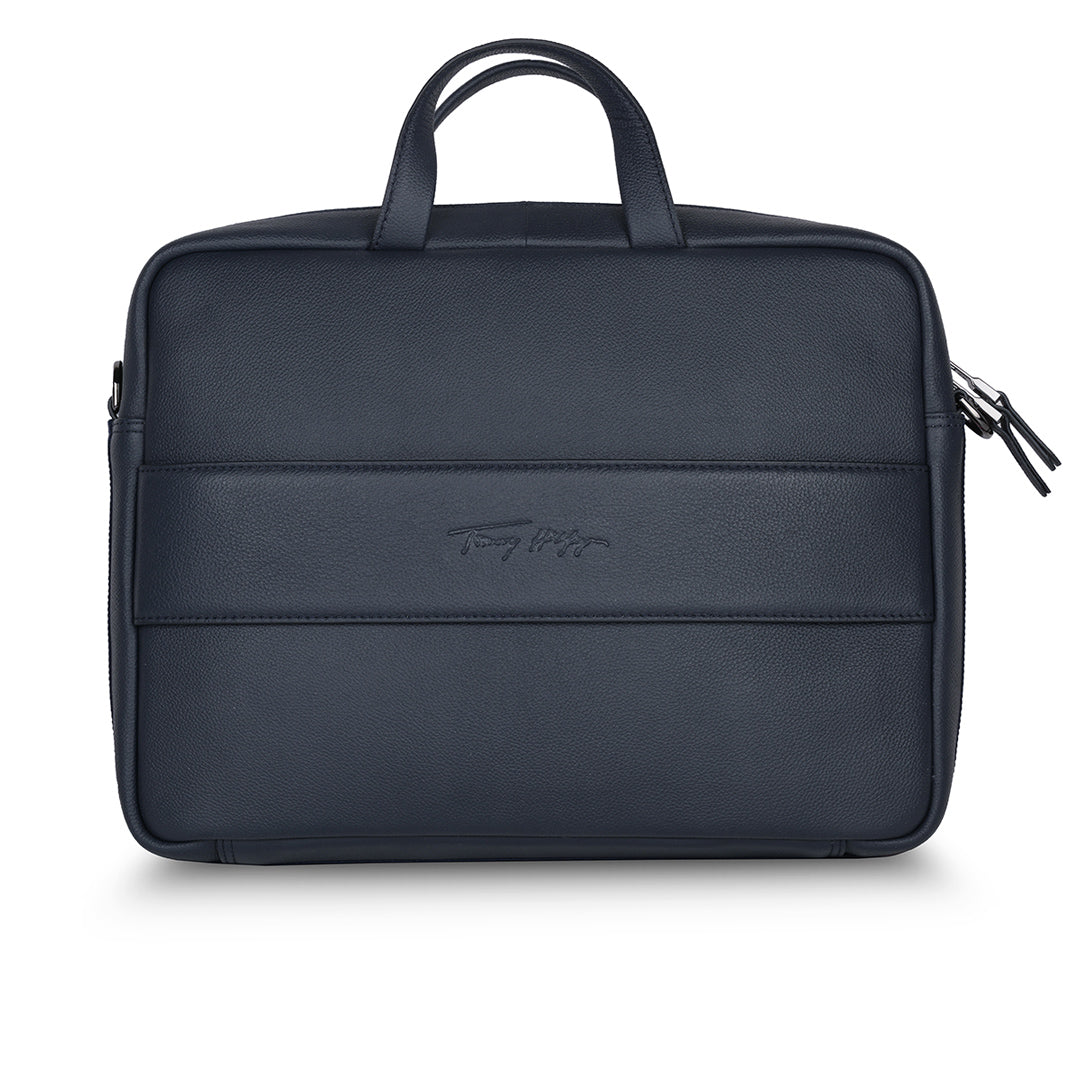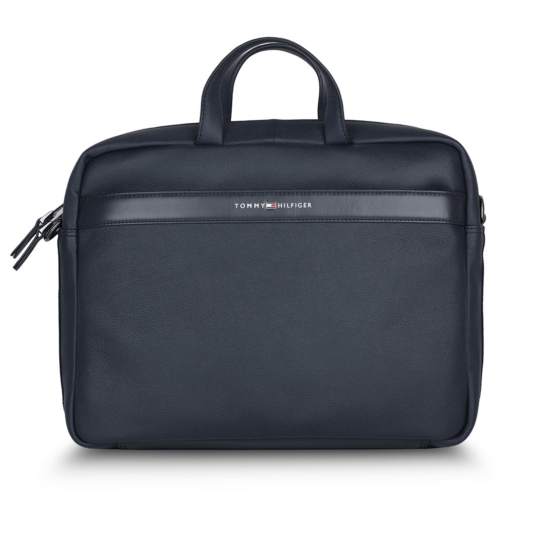 The Tommy Hilfiger Morbius Business Case is the pinnacle of sophistication and functionality. This stunning navy-colored business case is designed to suit your professional lifestyle by seamlessly blending elegance and functionality. It is made of fine leather and emanates durability and style. The case is ideal for travel and daily usage, with a textured printed pattern that sets it different from the crowd. Carry it easily with the adjustable and detachable webbing strap, which provides versatility and comfort. The inner cotton lining protects and organises your things in a stylish manner. The Morbius Business Case embraces a casual yet traditional charm, making it a must-have accessory for the targeting modern professional, whether you're heading to the office or attending meetings.