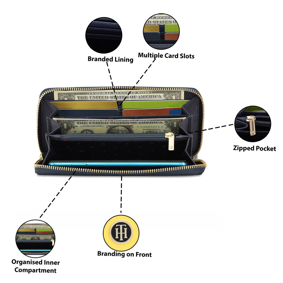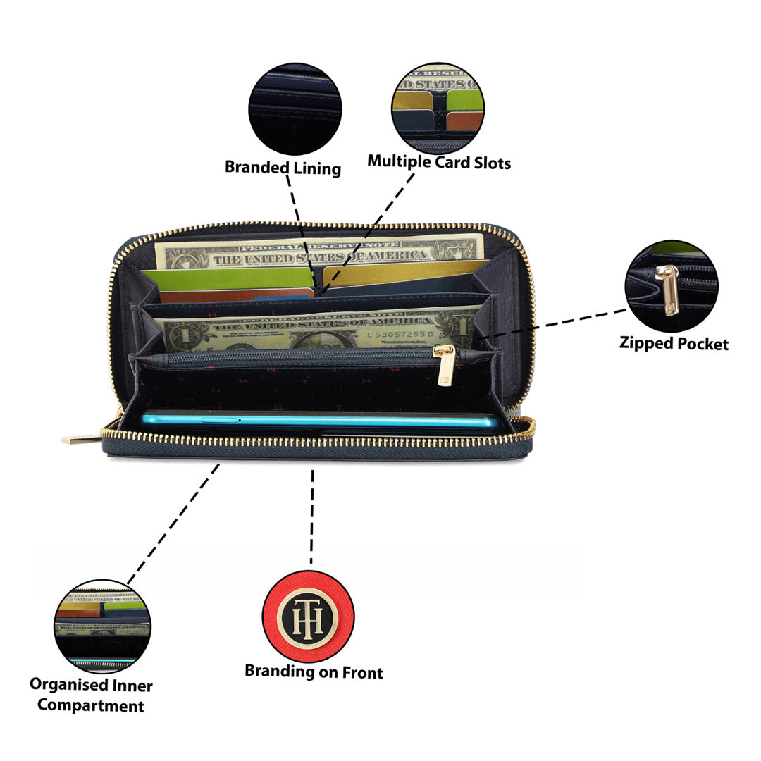 Tommy Hilfiger Natalee Womens Leather Zip Around Wallet Navy Tommy Hilfiger Natalee Womens Leather Zip Around Wallet Navy