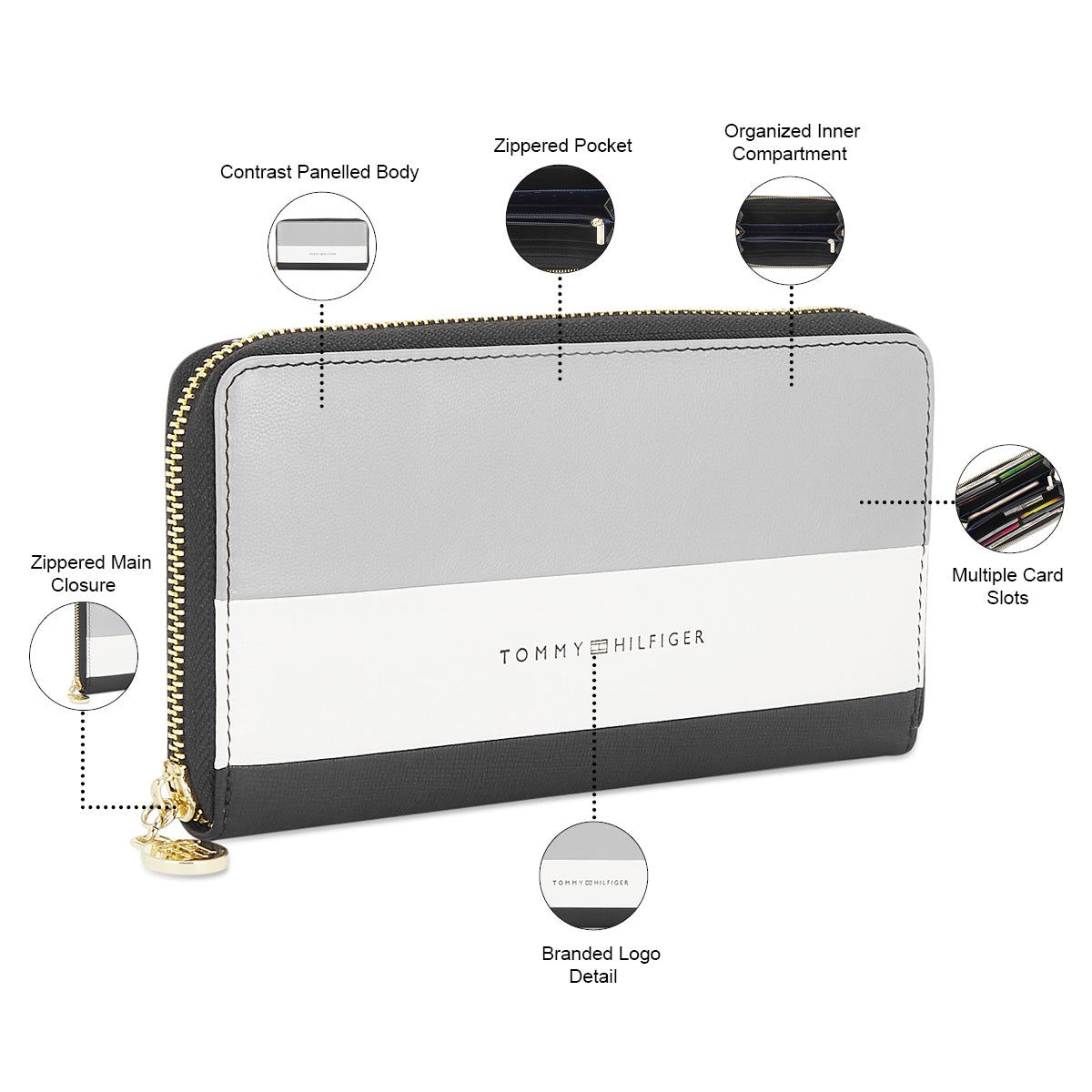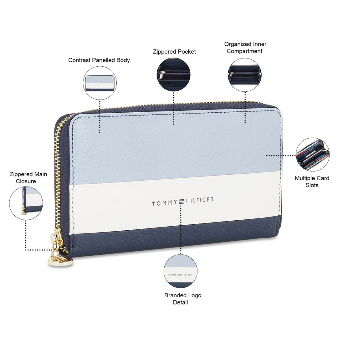 Tommy Hilfiger Ohio wallet comes in the summery hues of subtle shades. The leather wallet features a TH charm with the pull-up zipper. A stylish and chic accessory that portrays timeless elegance and style.