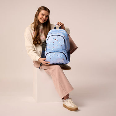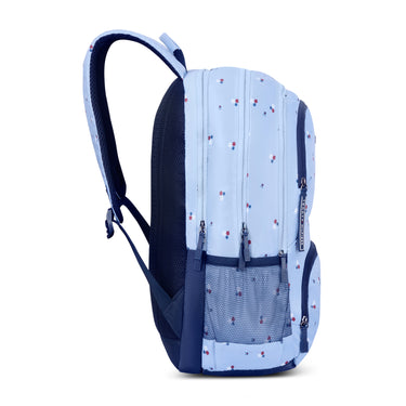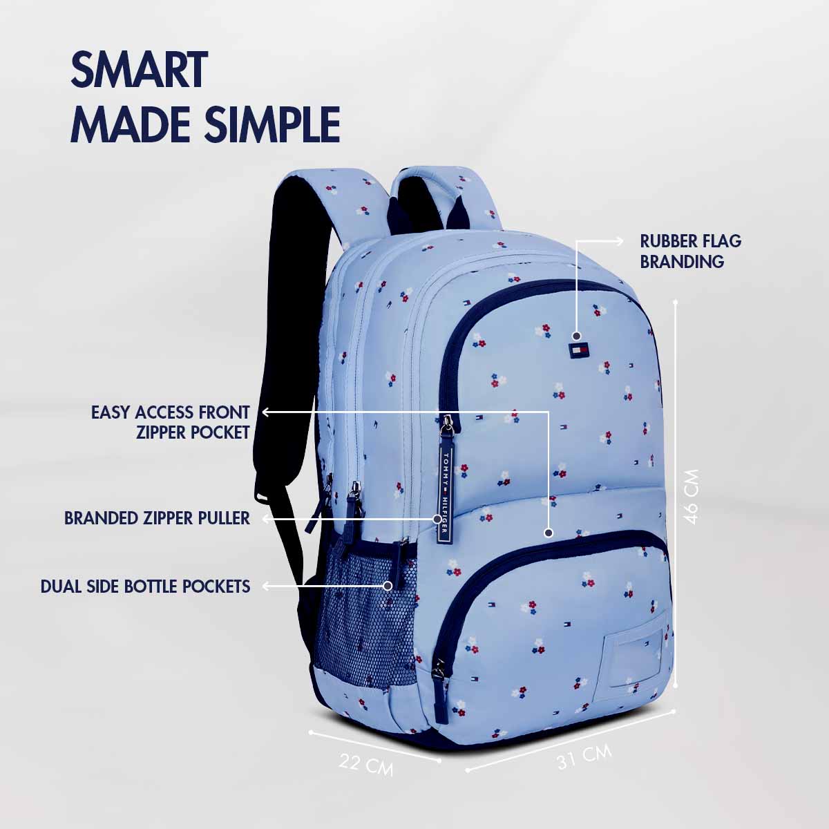Buckle accents and utility pockets. Adds functionality. Stylish elements. Practical design. Student-friendly.