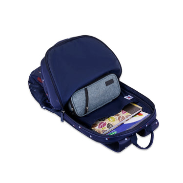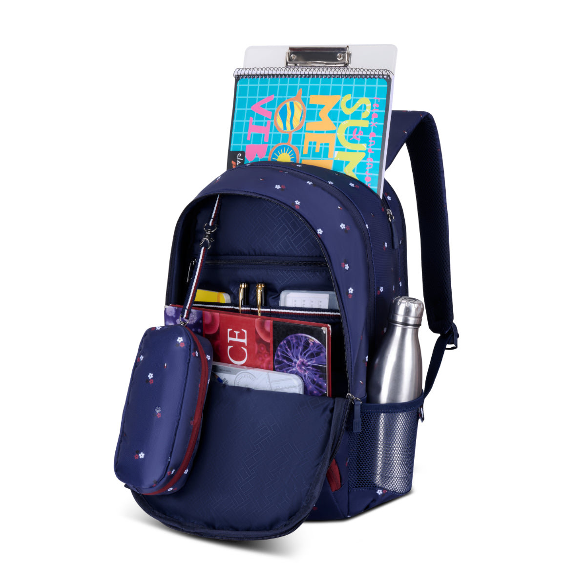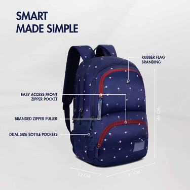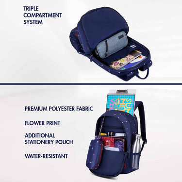 Spacious interior supports heavy books. Organized layout. Maintains balance. Ideal for higher grades. Academic support.