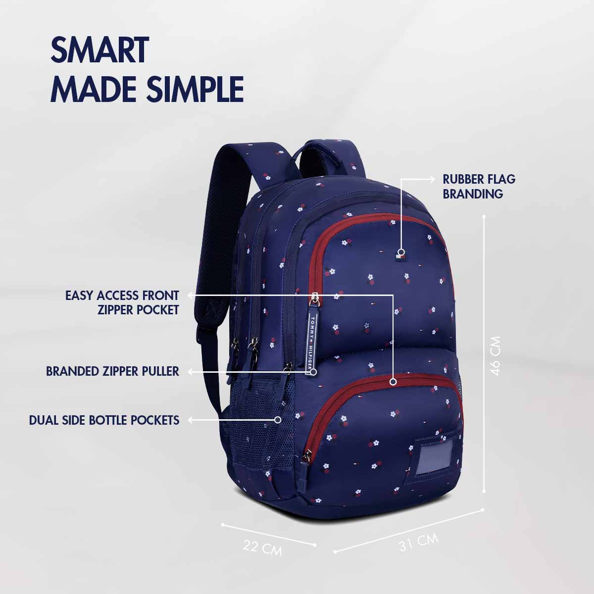 Buckle accents and utility pockets. Adds functionality. Stylish elements. Practical design. Student-friendly.