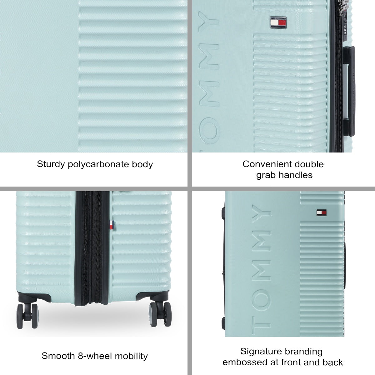 Effortless Elegance on the Go: Elevate your travel style with this sleek luggage featuring Tommy Hilfiger’s signature embossed branding and iconic design. Perfect for jet-setters who value sophistication and utility.