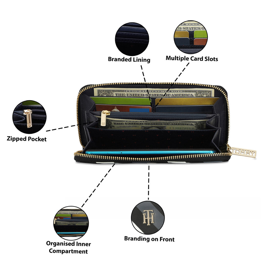 Tommy Hilfiger Rosa Women's Leather Zip Around Wallet-Navy
