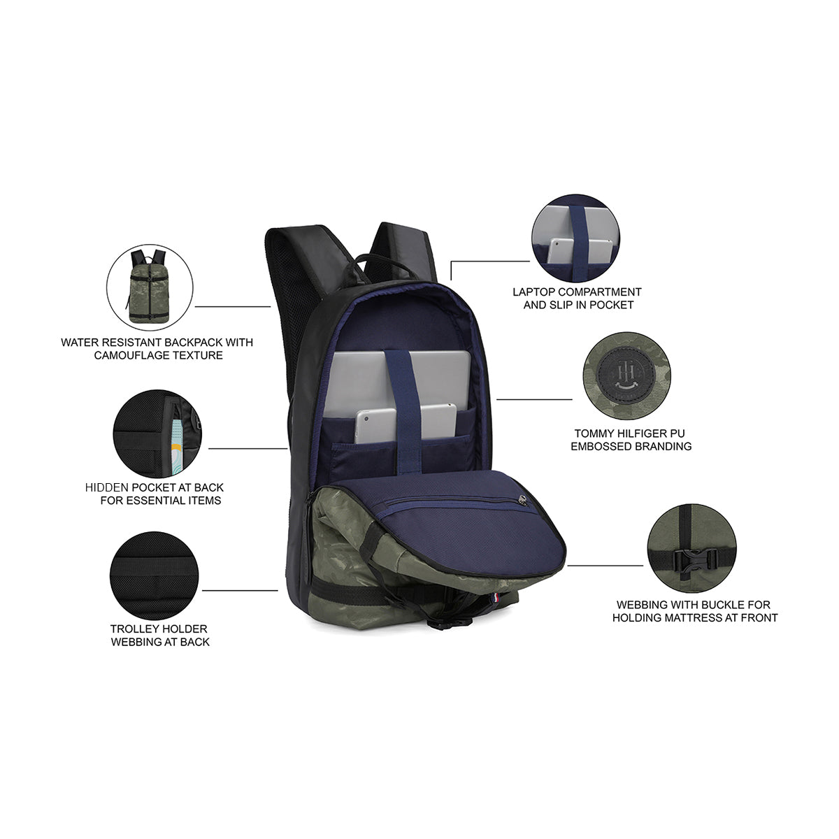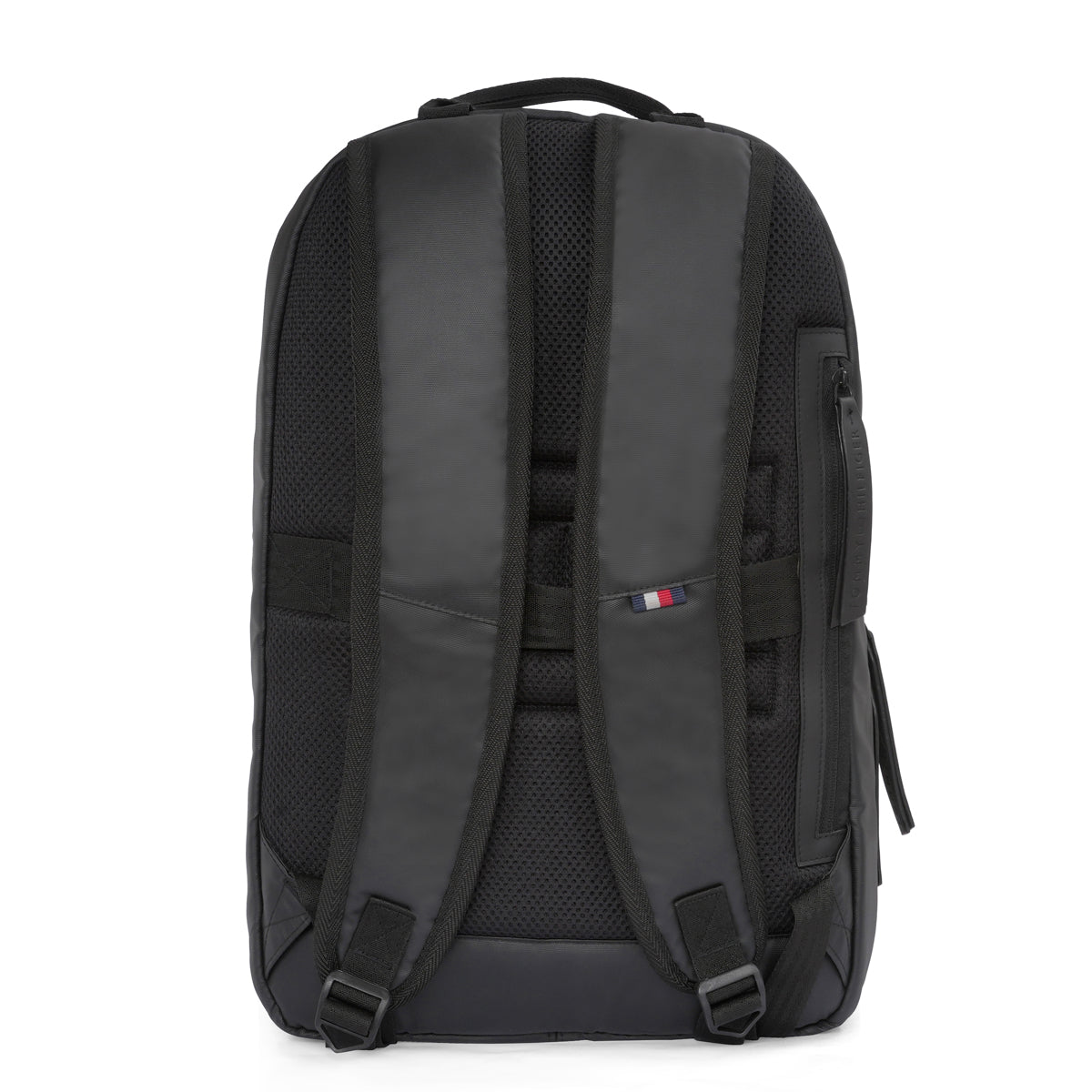 Embrace practical elegance with the Tommy Hilfiger Sawyer Laptop Backpack. Crafted from durable polyester in a versatile design, this unisex backpack is ideal for casual wear. It comfortably accommodates a 14-inch laptop in its two main compartments, secured with robust zipper closures. Designed for the daily commute, its water-resistant fabric ensures your essentials stay dry in any weather. The backpack features four pockets for organized storage and adjustable, padded straps for comfortable carrying. A single strap loop handle adds versatility to its carrying options. With its minimalist design, focusing on functionality, the Sawyer backpack is a smart, stylish choice for professionals and students alike, blending Tommy Hilfiger's renowned quality with everyday practicality.