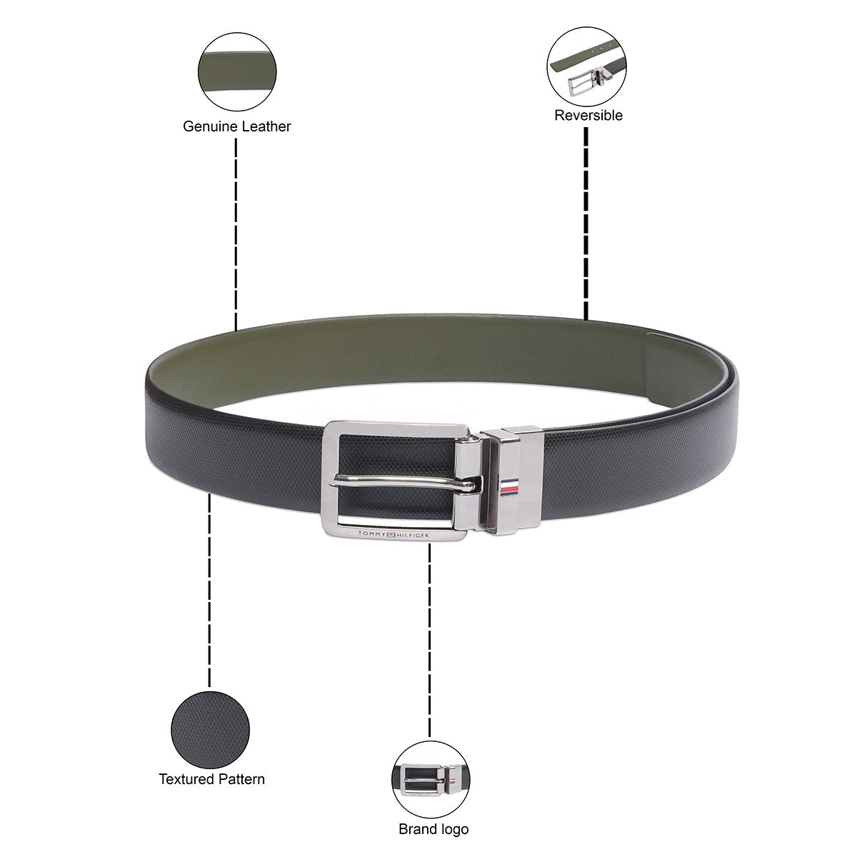 Tommy Hilfiger Seward Men's Reversible Belt Black Olive Tommy Hilfiger Seward Men's Reversible Belt Black Olive