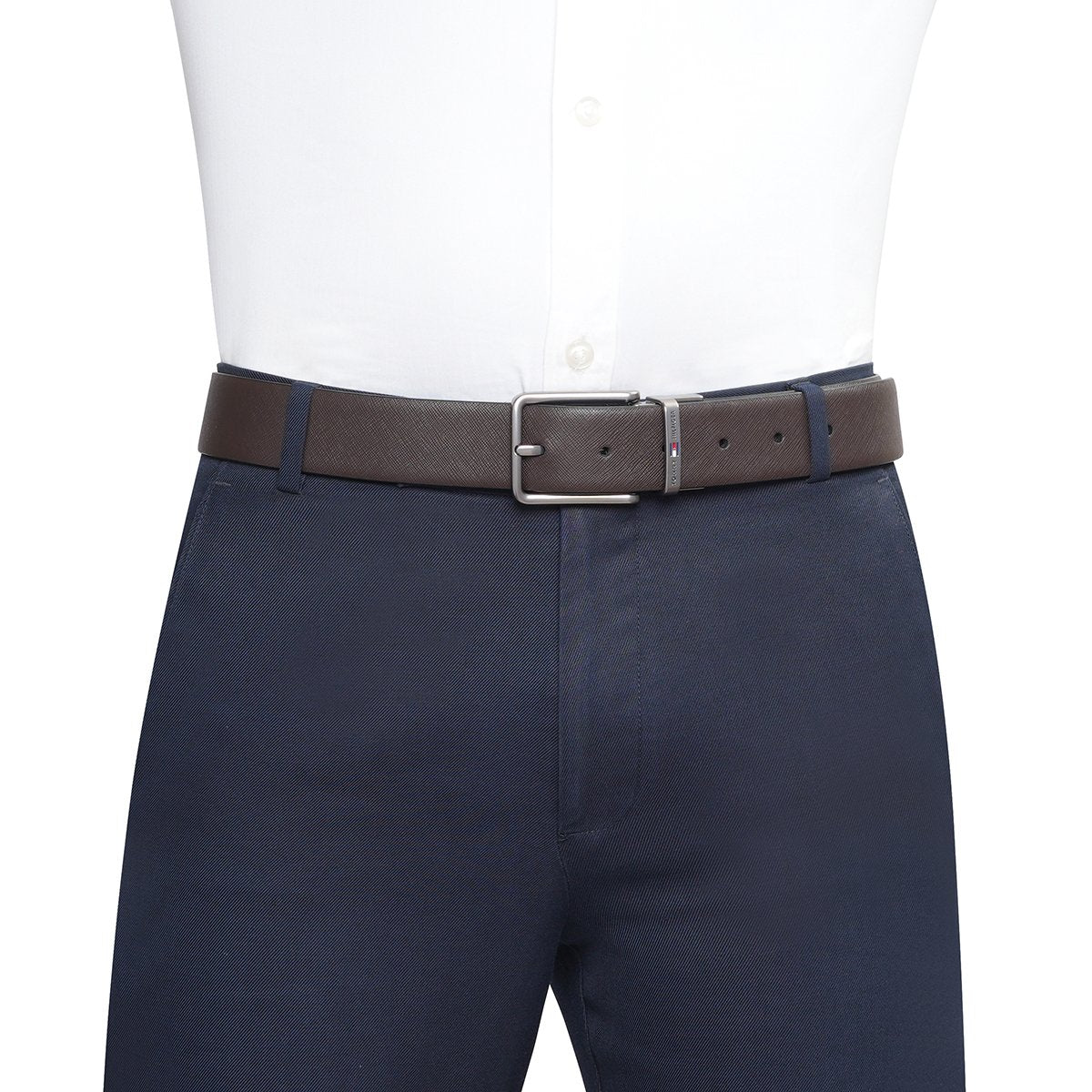 Twist to Tailor Your Look: The reversible design of this Tommy Hilfiger Stowe Men's Reversible Belt offers a perfect style choice with classic brown on one side and deep navy on the other.