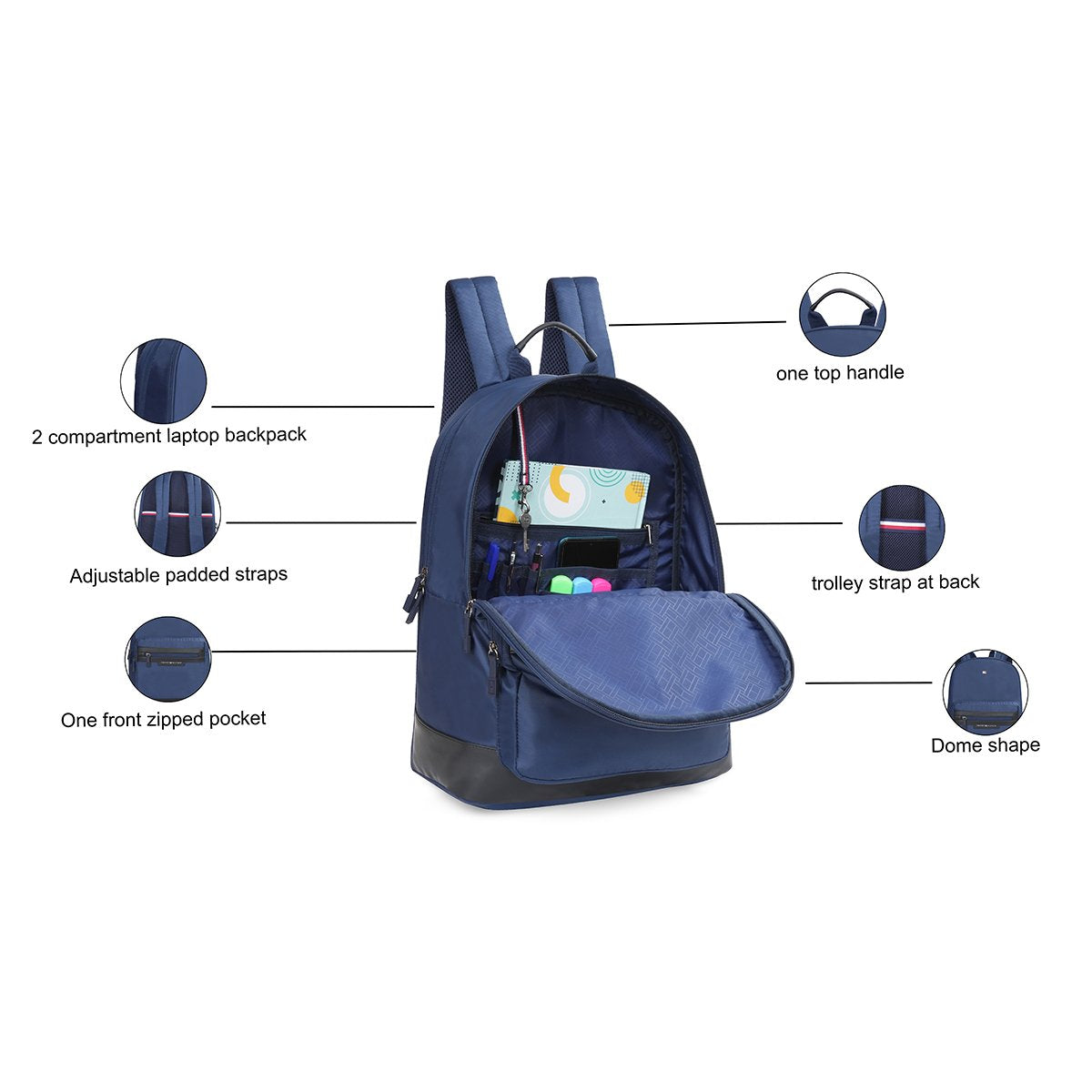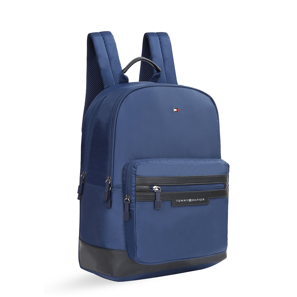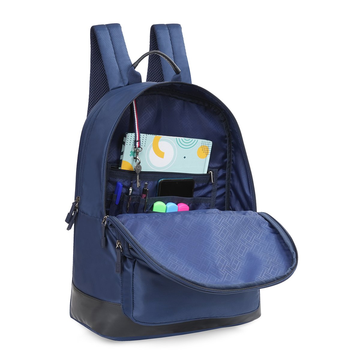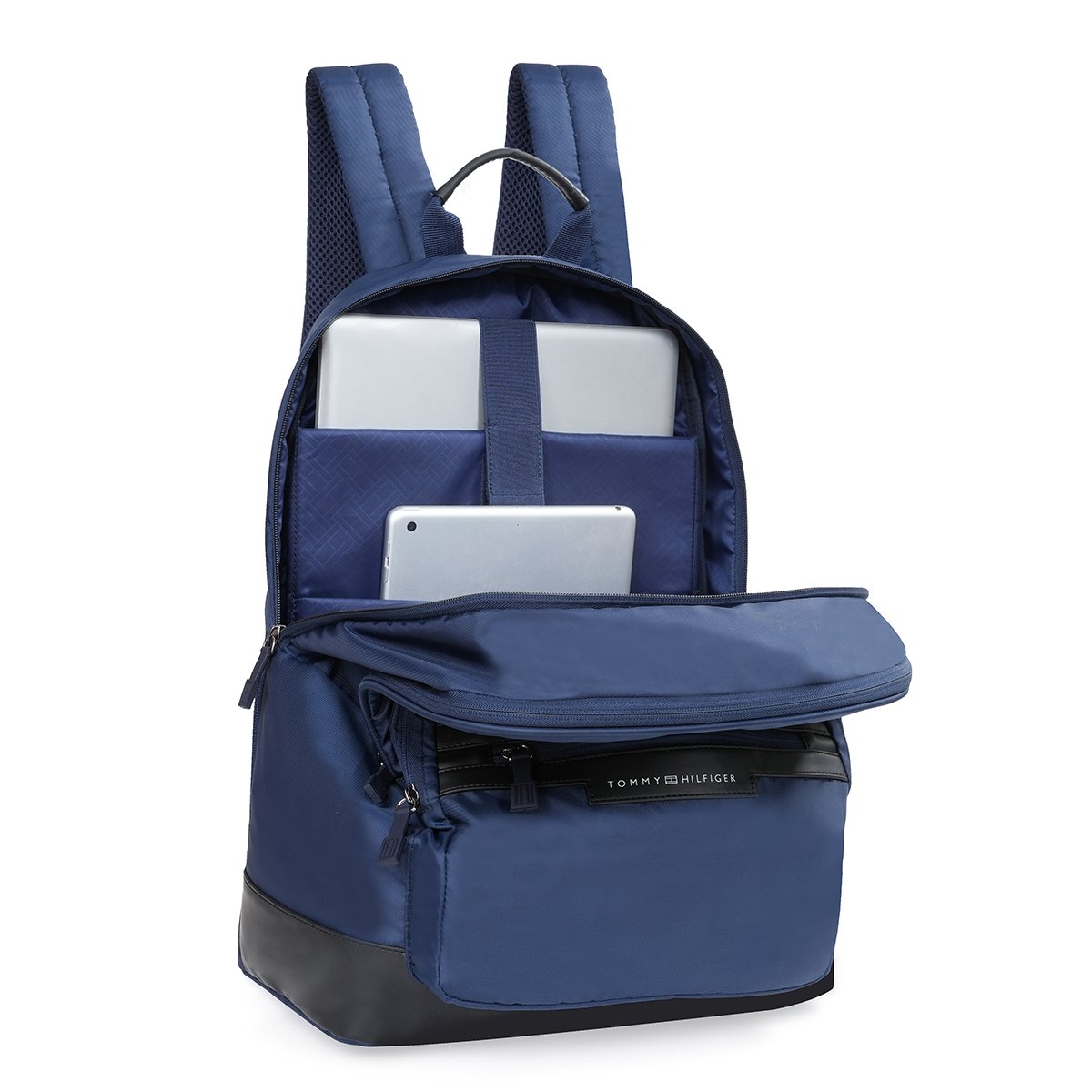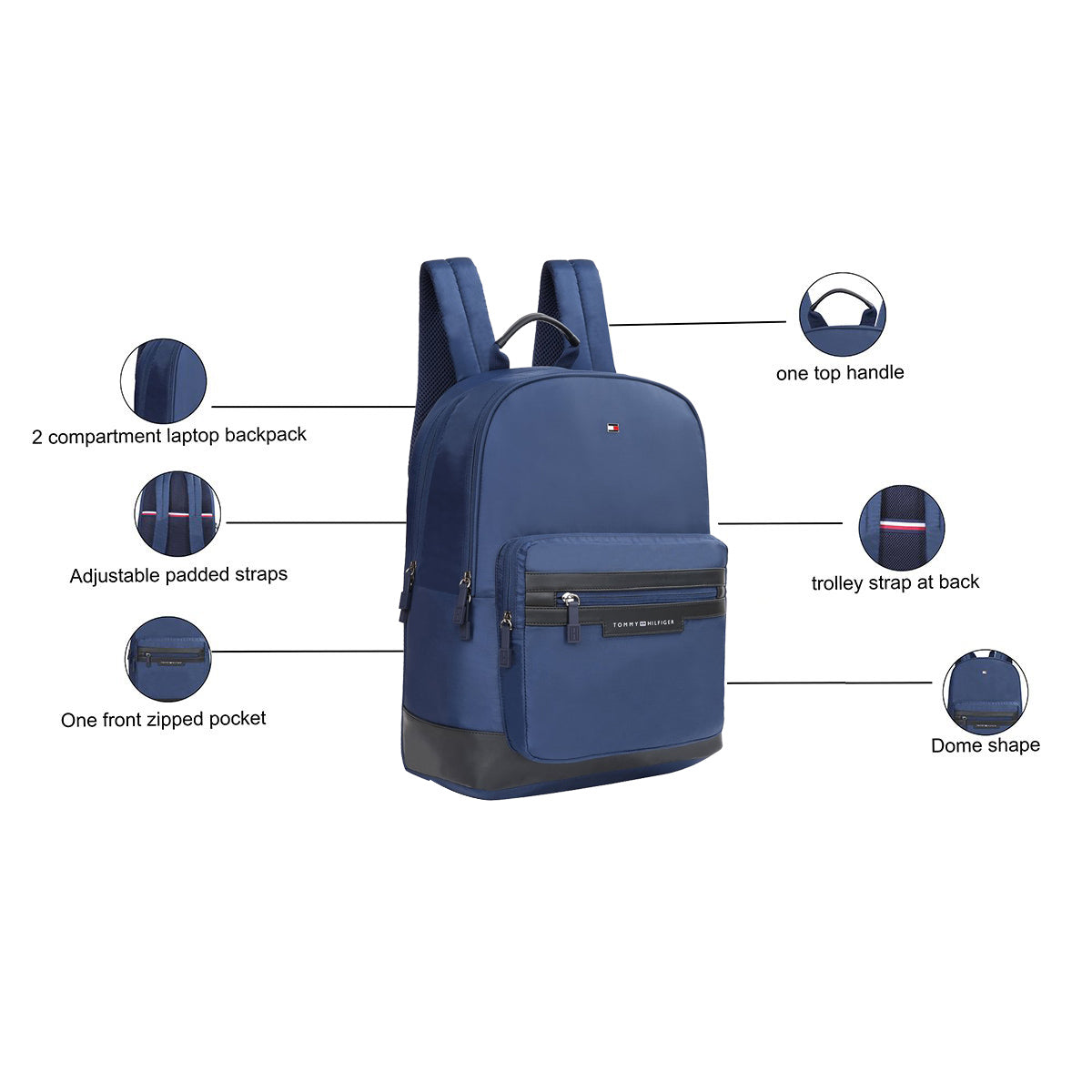 Introducing the Tommy Hilfiger Gibson Unisex Backpack, a perfect fusion of style and utility. Crafted from water-resistant polyester, this backpack features a zipper closure, a secure ladder lock strap and a plain pattern for a preppy edge. This bag features two compartments, three pockets, and two card slots for optimal organization, accommodating up to a 16-inch laptop. The printed branding on the front panel and the signature metal flag branding gives it a contemporary look. Elevate your daily ensemble with the Tommy Hilfiger Gibson Backpack.