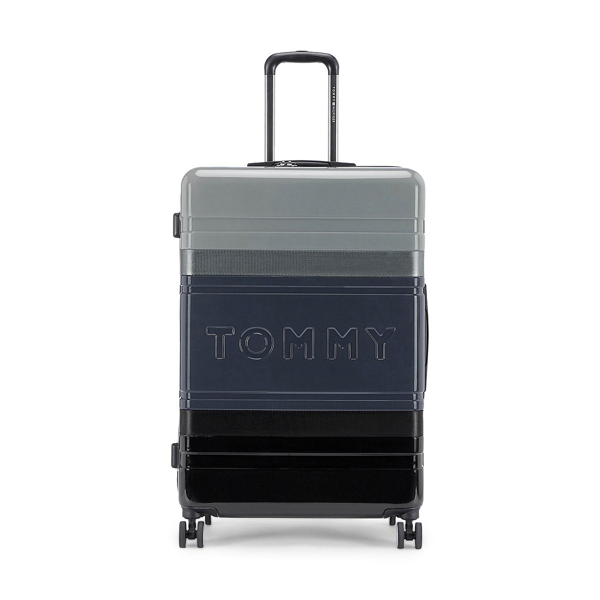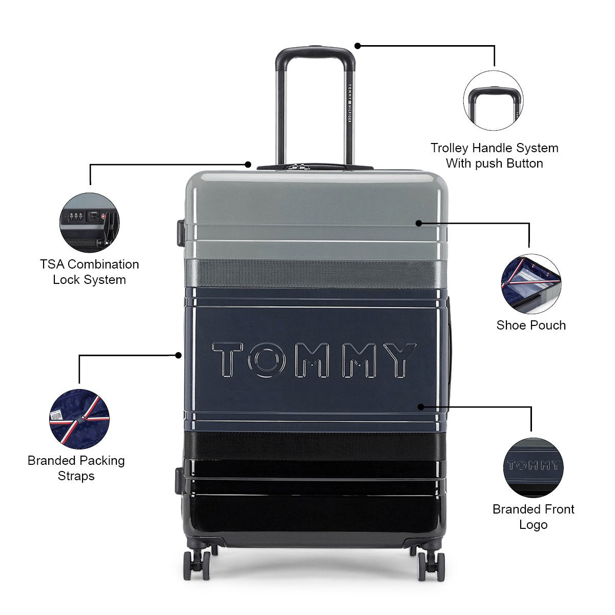 The Tommy Hilfiger Unisex Triton Pro hard trolley luggage is easy to move around luggage. The striped hues add to the style of the luggage bag while the retractable trolley handle, smooth self-lubricating wheels, and an additional shoe pouch accentuate the functionality of the bag.