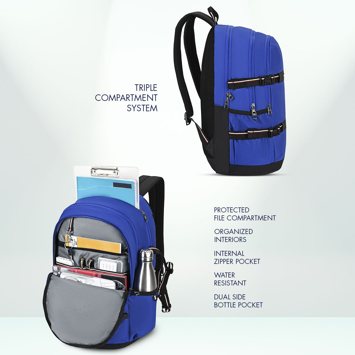 Spacious interior supports heavy books. Organized layout. Maintains balance. Ideal for higher grades. Academic support.