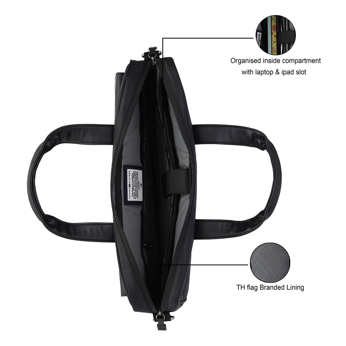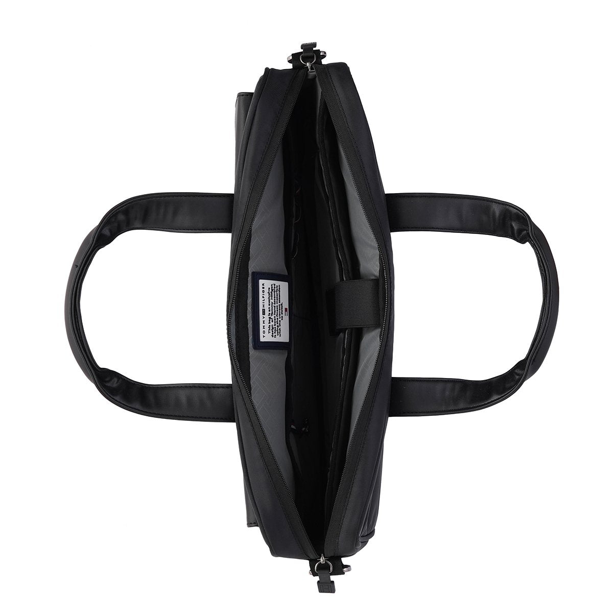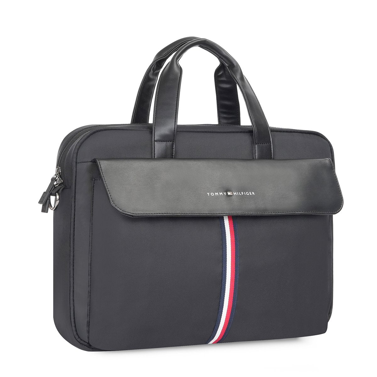 Introducing the Tommy Hilfiger Vitreous Business Case which is crafted from premium polyester fabric with an effortlessly pragmatic design. The case features a convenient zipper closure, an adjustable and detachable strap, and a double strap grab handle, allowing you to carry it comfortably as a shoulder bag or remove the strap and use it as a hand-held briefcase. Its solid pattern design adds a touch of sophistication, while its water-resistant properties ensure that your belongings stay dry and protected.
