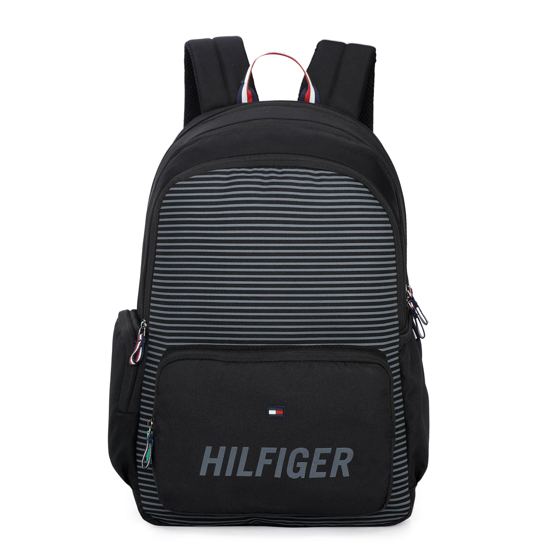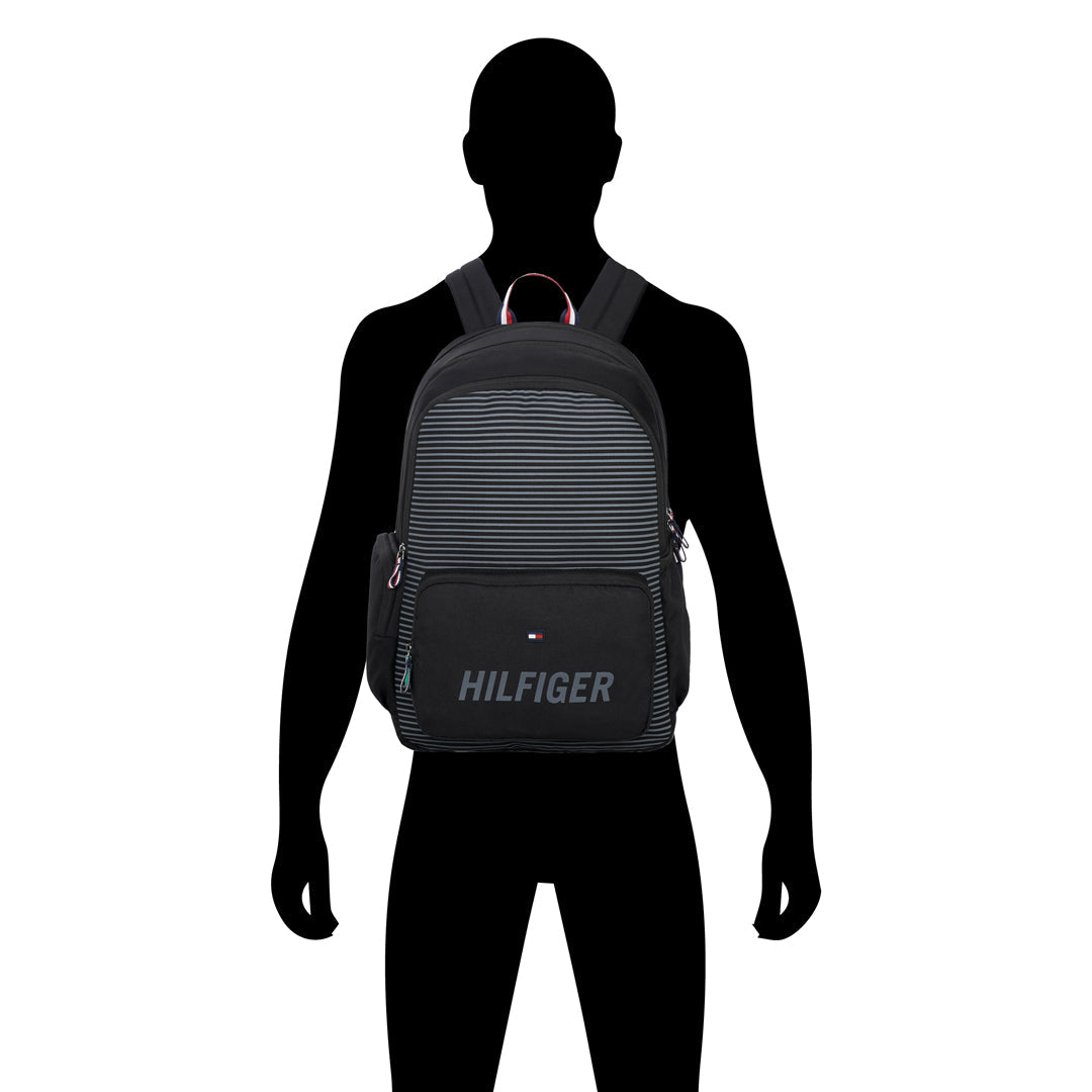 Crafted with utmost precision Tommy Hilfiger Vulcan sustainable backpack is the perfect partner in routine. The backpack strives to withstand by your side through dusk till dawn and throughout every season. Not only is it made from recycled fabric which makes it good for the planet, but also it aims to better protect your bag with water-resistant material and a dedicated rain cover. Carry your style wherever you go with cushioned adjustable shoulder straps and stand-out of the crowd with the beautiful striped design. This sustainable bag comes in three elegant colors: Navy blue, burgundy and black. #Travelwithstyle and versatility with the Tommy Hilfiger Vulcan Sustainable Backpack.