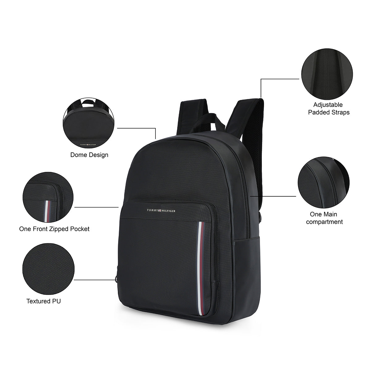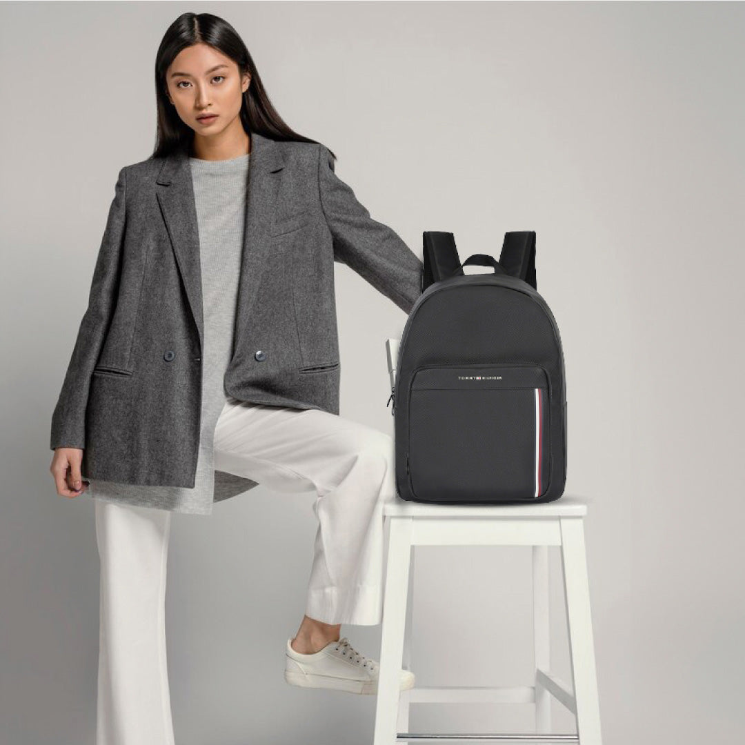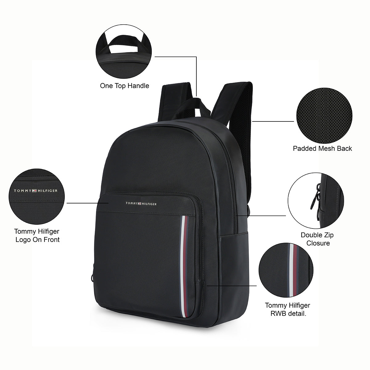From the esteemed European line, the Tommy Hilfiger Wigan Backpack is an embodiment of elegance and functionality. Designed specifically for men, this travel gear seamlessly combines practicality with sophisticated style. Crafted from high-quality PU material, the backpack features a stylish pebbled texture and a robust PU strip handle, ensuring long-lasting use and a premium look. Its multiple pockets and secure zipper closure provide excellent functionality for everyday use and travel. Whether you're navigating your daily commute or embarking on a weekend getaway, this versatile accessory blends classic American cool with modern design elements, making it an ideal choice for any wardrobe.