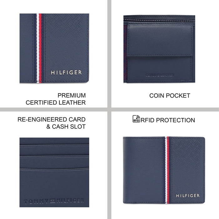 Stylish Organization & Security: The Tommy Hilfiger Zadar Men’s Global Coin Wallet in navy combines re-engineered card and cash slots with a coin pocket, all protected by RFID technology to keep your essentials safe and stylishly organized.