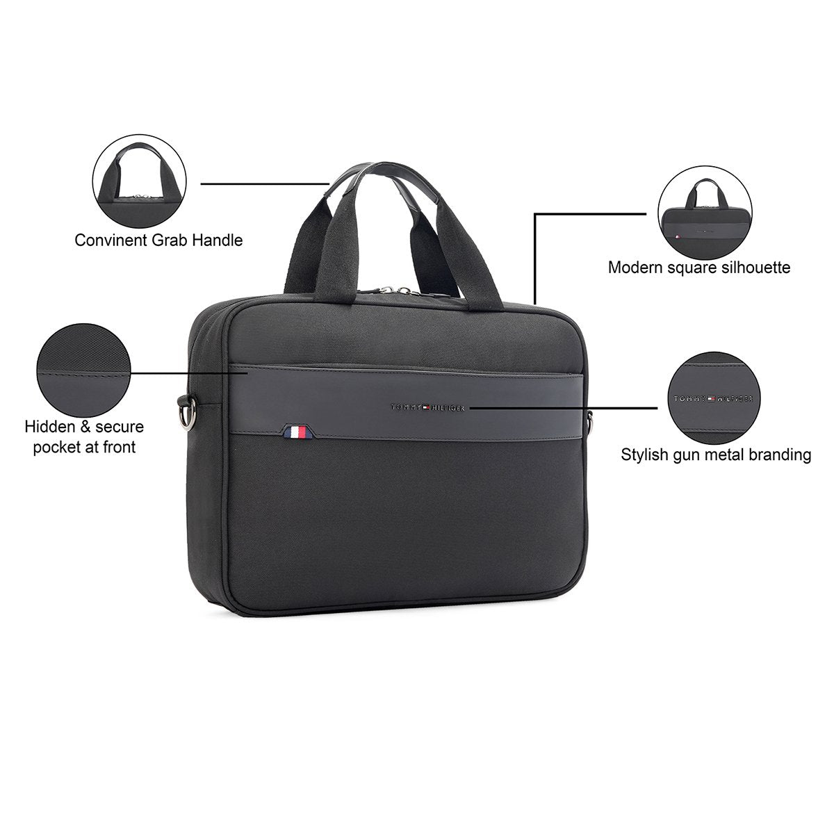 The Tommy Hilfiger Paddock Unisex Business Case is here, merging business-ready utility with a touch of casual refinement. Made from high-quality, water-resistant polyester fabric, this case combines durability and lightweight wear. Carrying choices are secure and adaptable thanks to the zipper closing, adjustable strap, and webbing strap handle. The Paddock Business Case, which can hold laptops up to 14 inches, is the ideal combination of fashion and functionality.