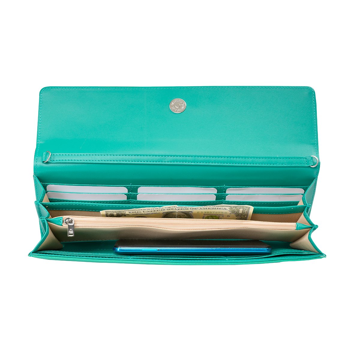 Your cash, change, and receipts will have more than enough room in the three roomy compartments and one pocket inside. The eighteen card slots are perfect for organizing your credit and debit cards, ensuring you have everything you need at your fingertips.