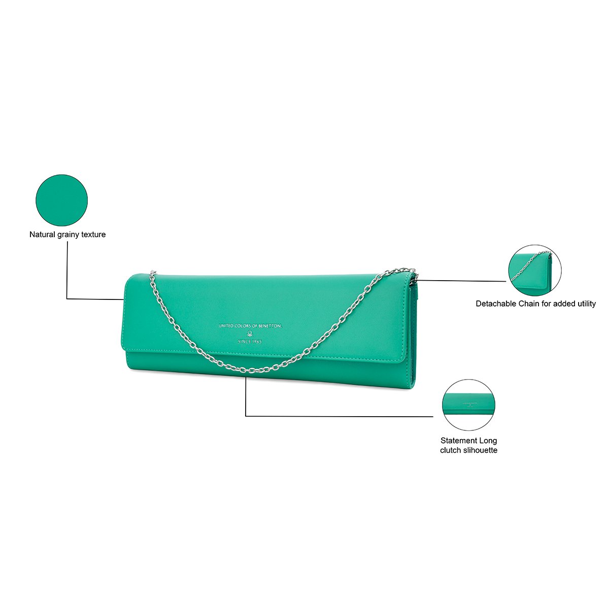 Boost your casual look with the United Colors of Benetton Amelie Clutch Handbag. Constructed from premium solid PU fabric, this clutch has a modern, adaptable style that goes well with any ensemble. Your valuables stay safe with the flap closure on the clutch and detachable metal strap, while the cotton lining inner material guarantees longevity and a lavish touch.