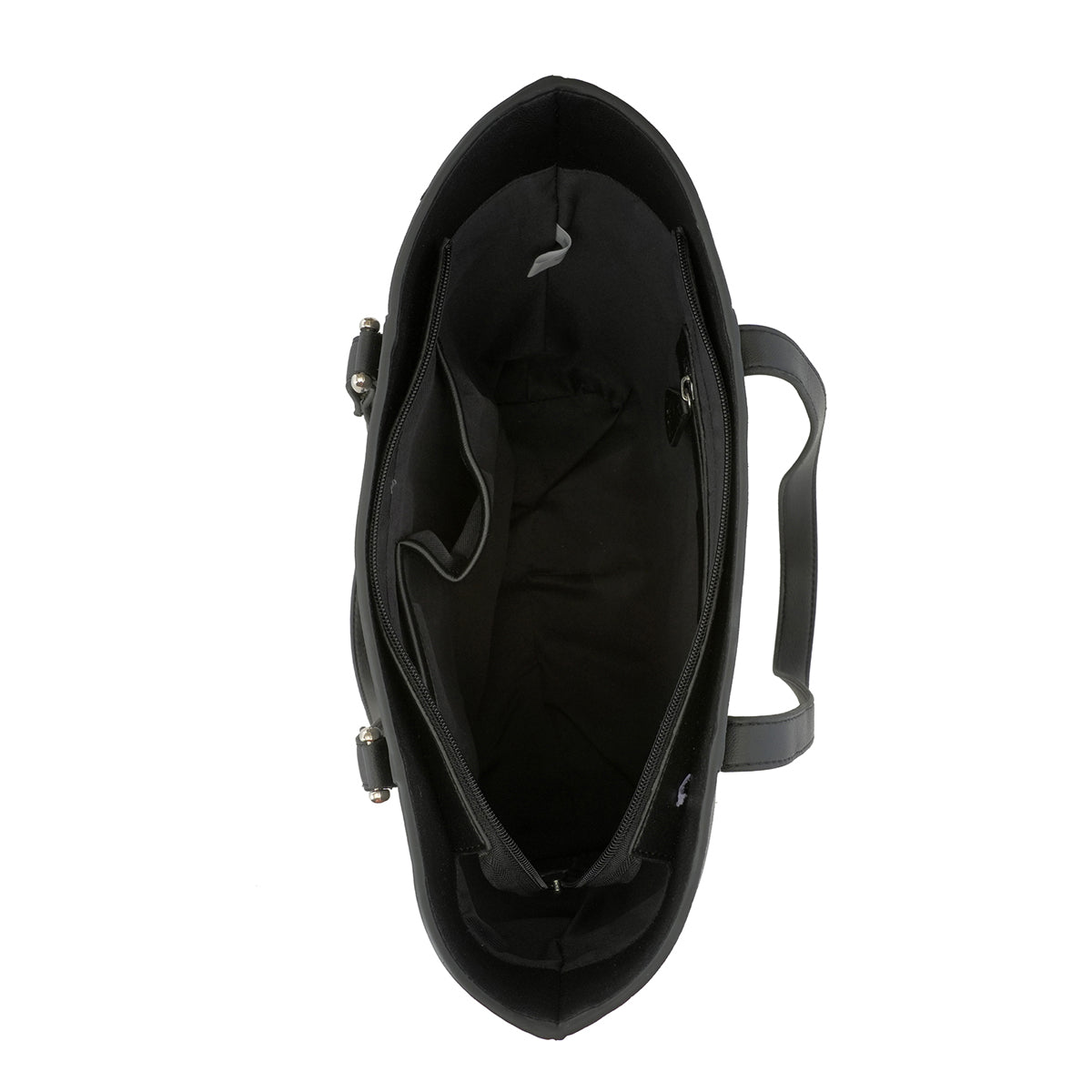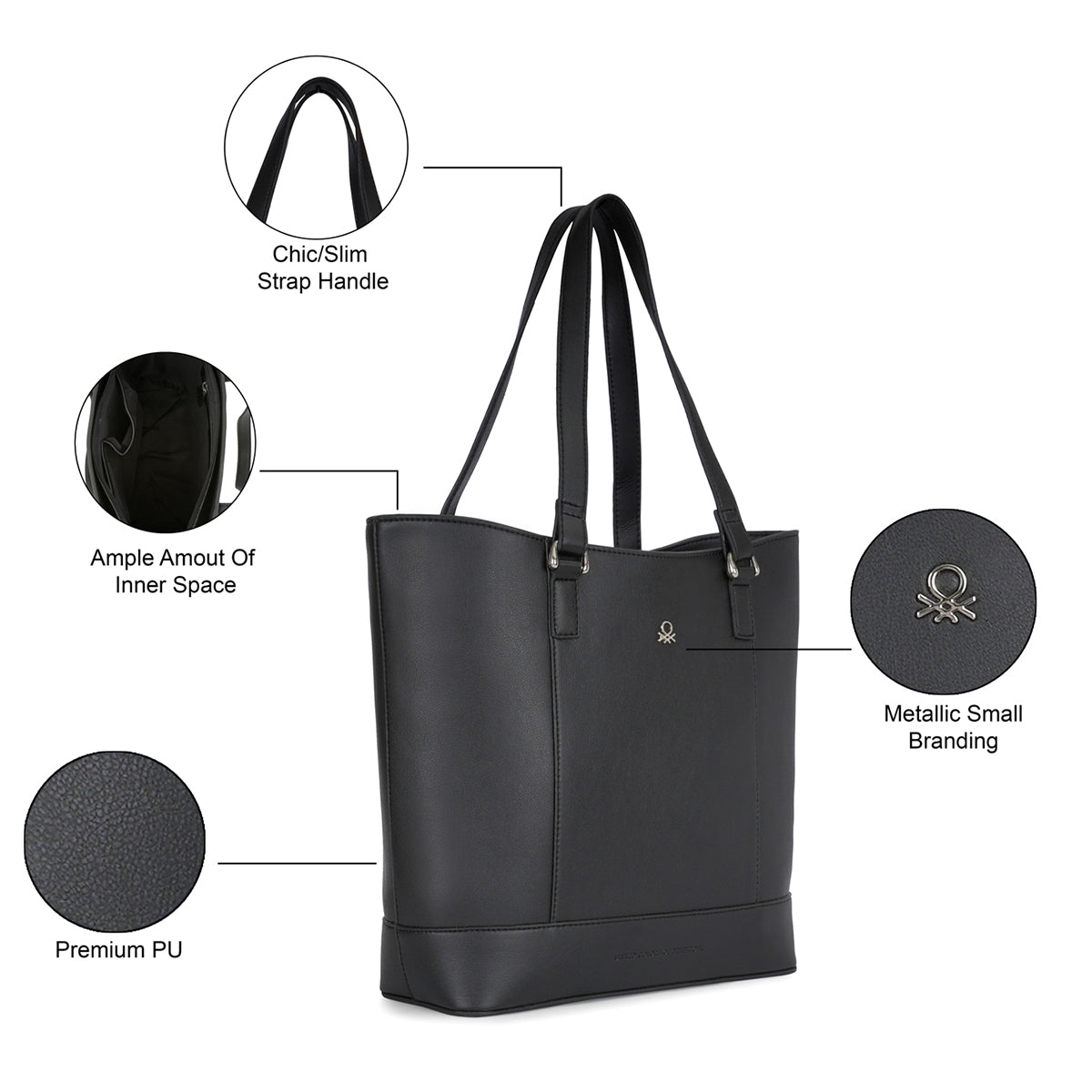 Unveil a touch of modern elegance with the Delphine Tote by United Colors of Benetton. This tote, characterized by its intricate textured pattern, is a harmonious blend of style and utility. The shiny nickel trim infuses a contemporary flair, harmonizing with the tote's secure zipper closure. Inside, the bag's premium PU construction is complemented by a polyester twill lining, featuring two zips and three inner pockets, ensuring your essentials are neatly organized. Adorned with a 15-inch UCB logo and the brand's signature knot emblem, and finished with sturdy PU strap handles, the Delphine Tote is a reflection of Benetton's dedication to craftsmanship and timeless design.