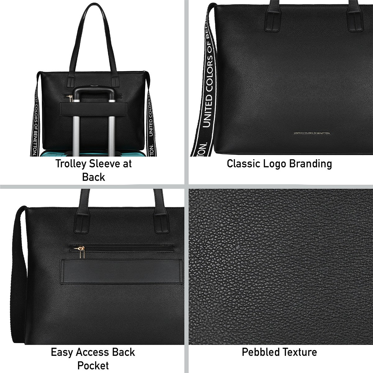 Trolley strap at the back for easy attachment to luggage.