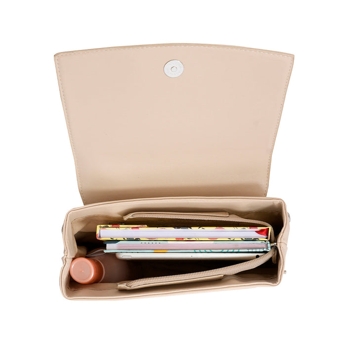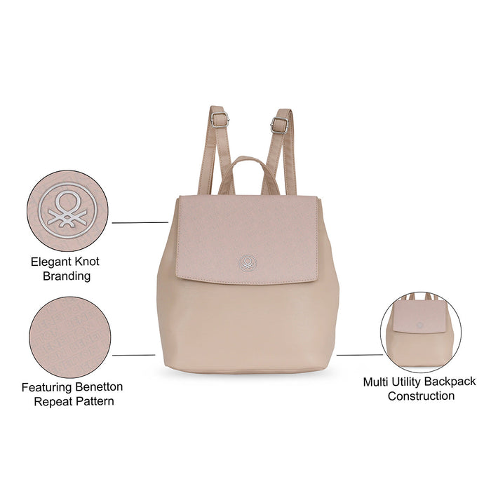 Dive into a chic realm with the United Colors of Benetton Hallie Backpack- A fashion forward companion that marries style and functionality. The PU structure along with the cotton lining ensures dependability. This backpack showcases a dynamic Benetton print on both the straps and the flap adding to the contemporary style. Ample space within the main compartment along with two pockets are secured with a flap, creating the perfect look for your day out.