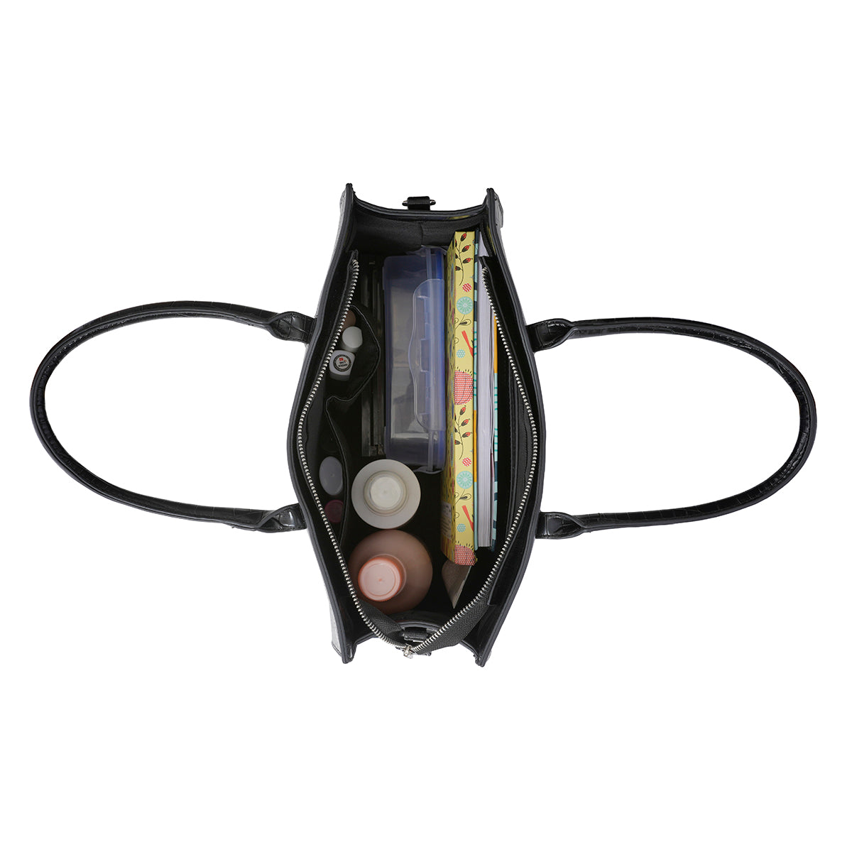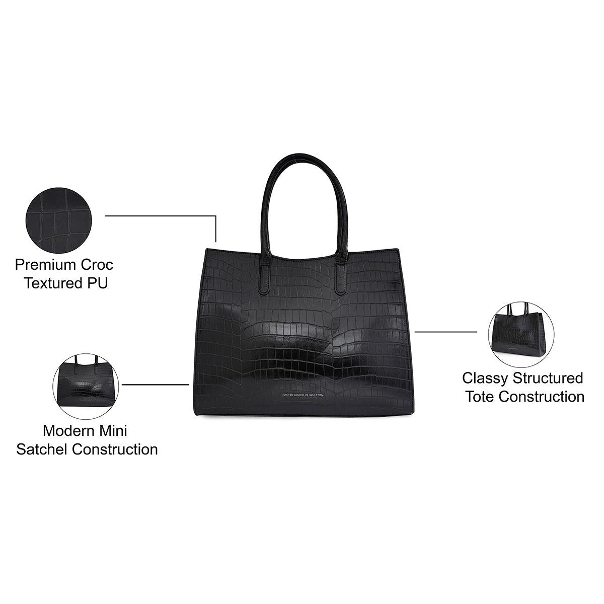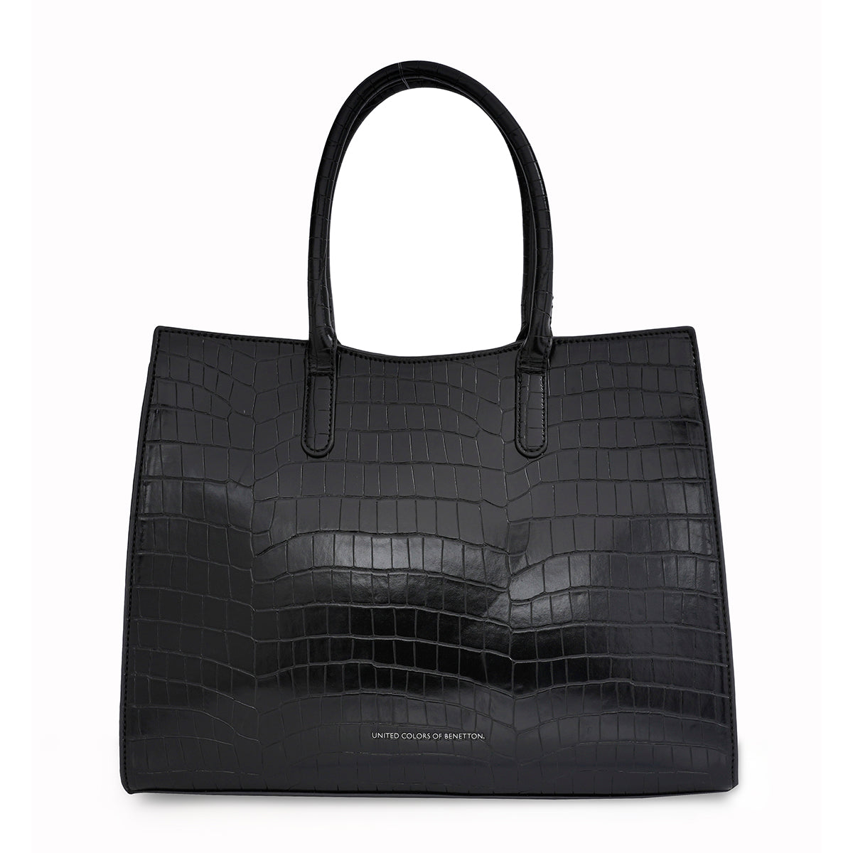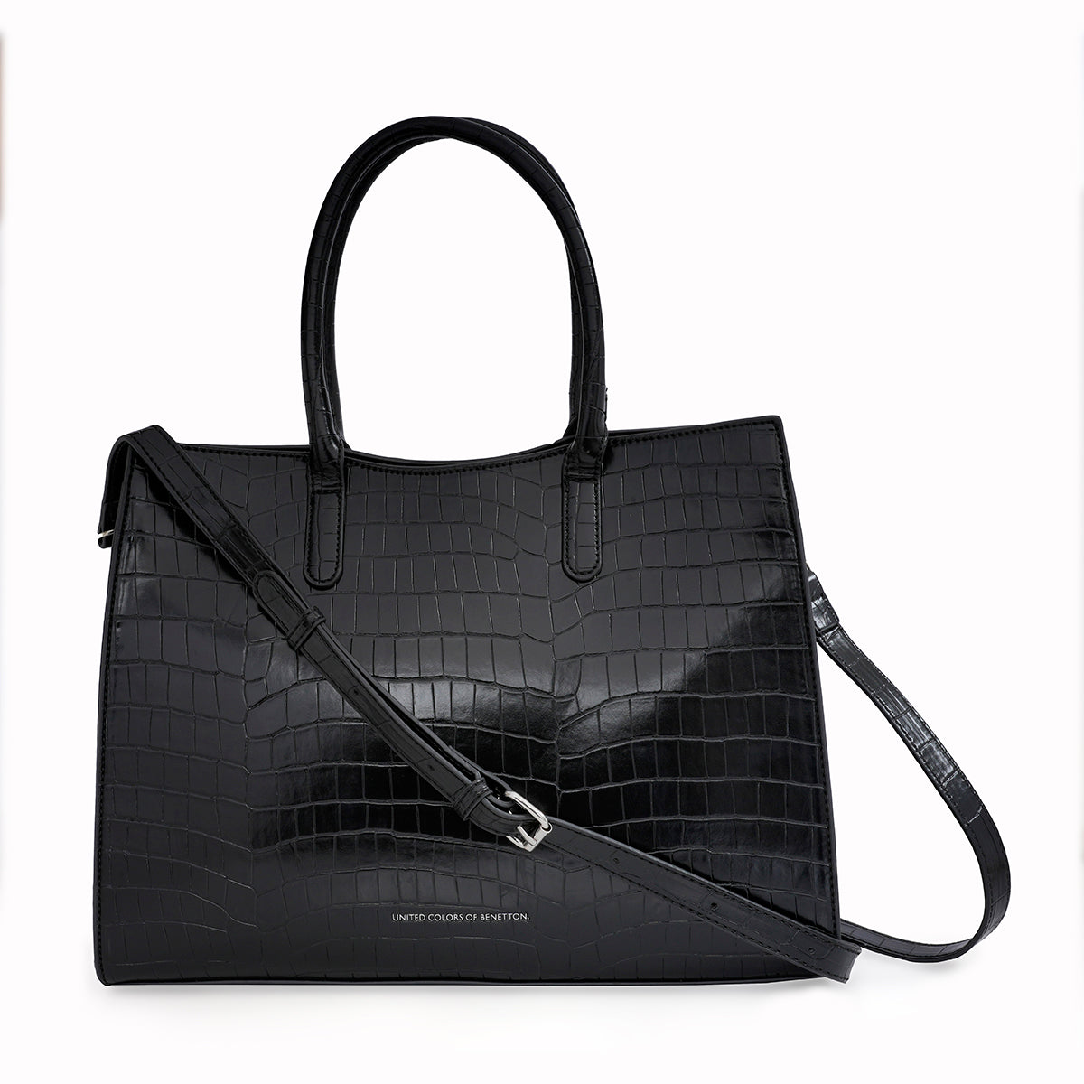 The United Colors of Benetton Kamlyn Satchel is the perfect accessory to your ensemble. Crafted with durable PU material and a cotton lining, this satchel features a captivating croc textured pattern adding to its overall glam. Designed with a detachable PU strap and a shiny nickel trim, this satchel offers versatility with modern elegance. With one spacious compartment and 3 pockets the Kamlyn Satchel makes organization stylish. The Benetton half Metal logo adds to the overall elegance of the satchel.
