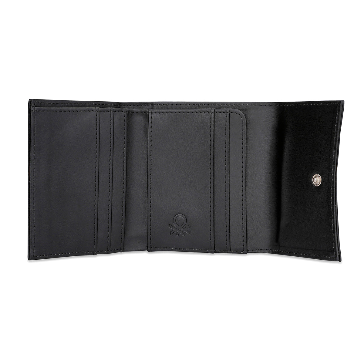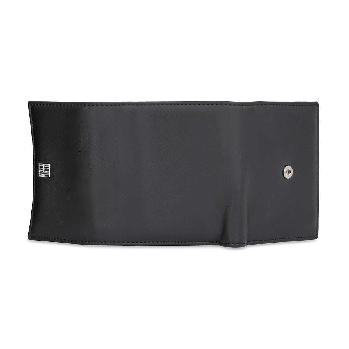 Introducing the United Colors of Benetton Lina wallet- a stylish companion to the modern trendsetter. Crafted from resilient PU material, this wallet features a solid pattern making it a classic choice. The cotton lining and polyester inner material ensure both luxury and durability. With one compartment, two pockets, and four card slots, the Lina Wallet is the perfect accessory to your look. The flap closure secures your essentials, while the shiny nickel trim adds an edge to the design. Improve your everyday style with the Lina wallet.