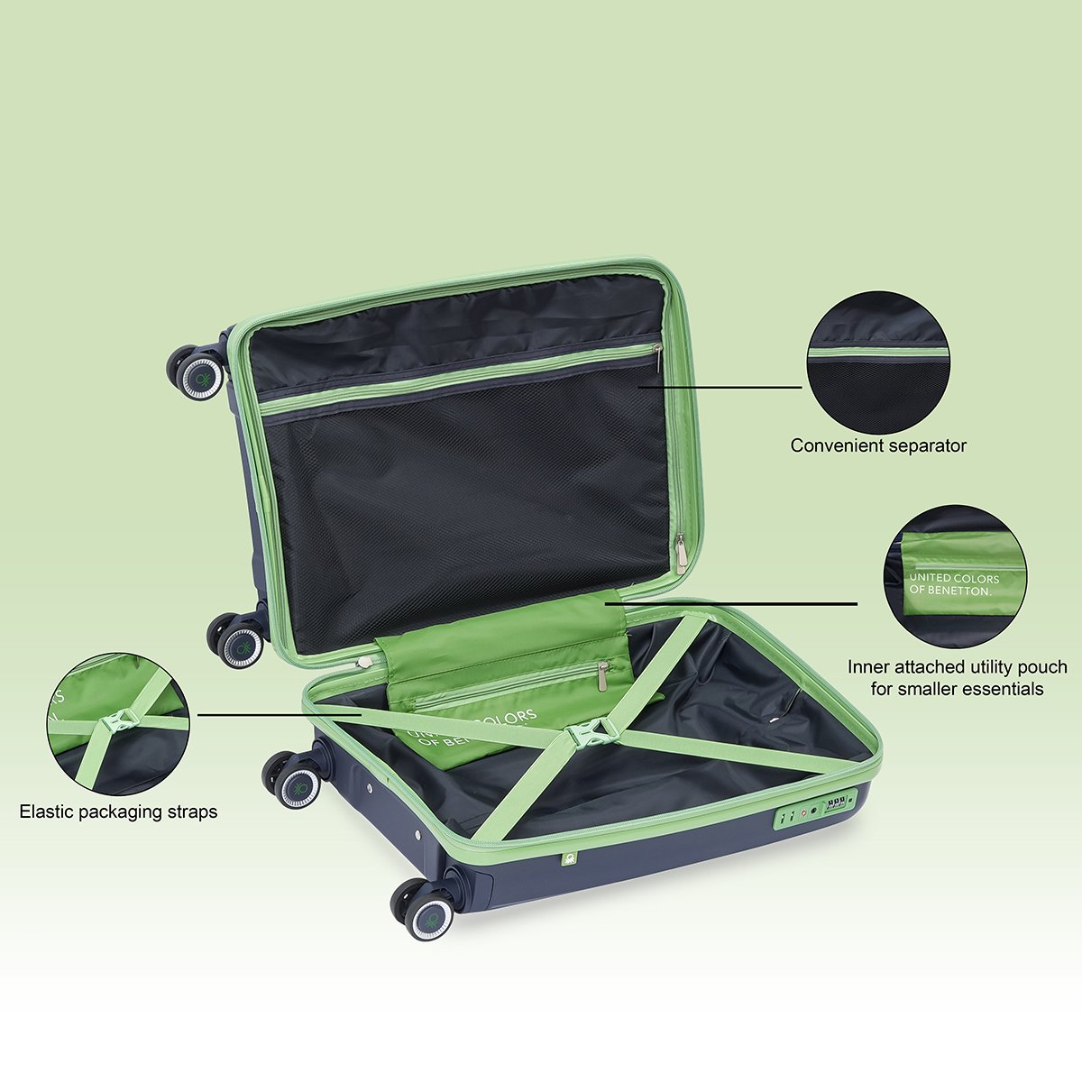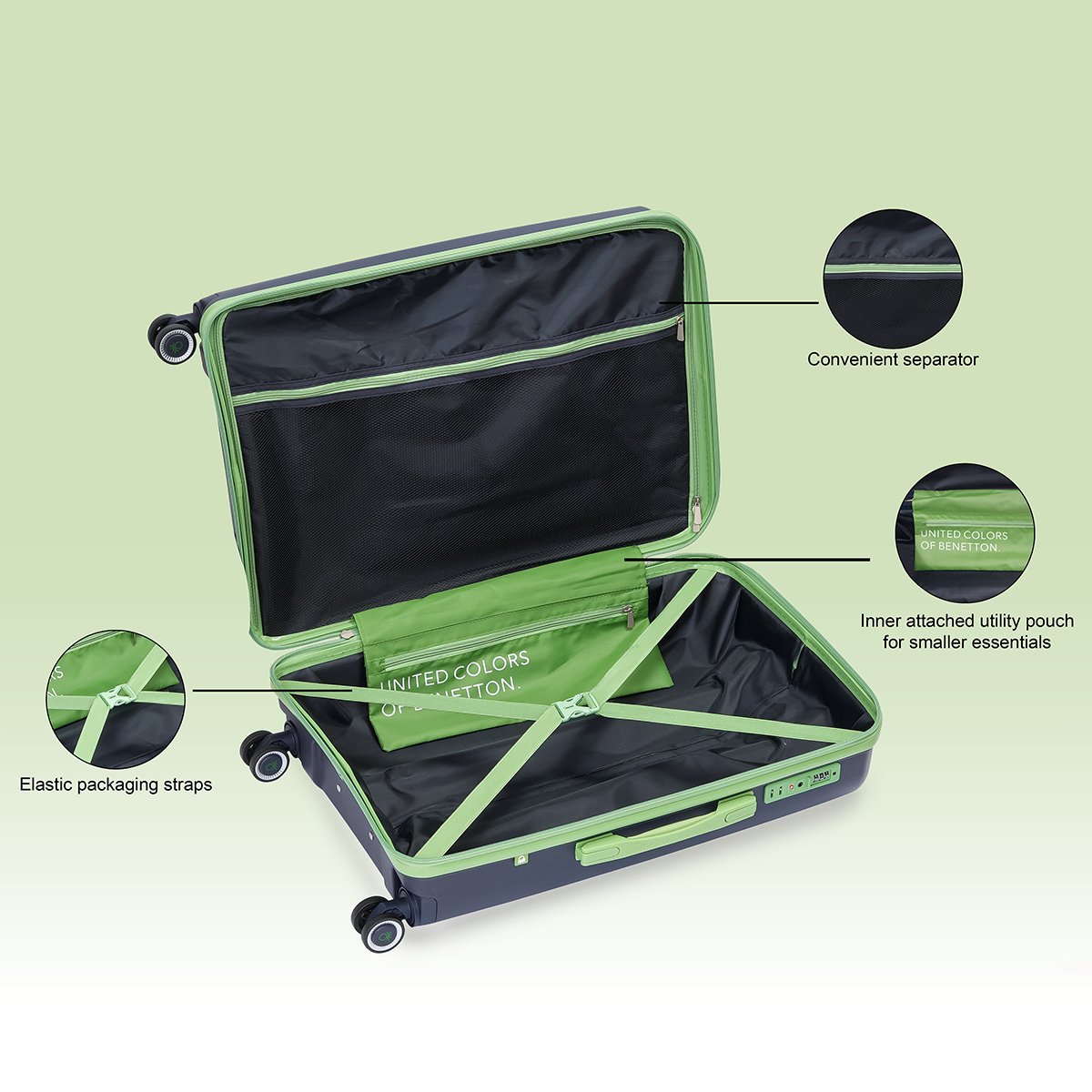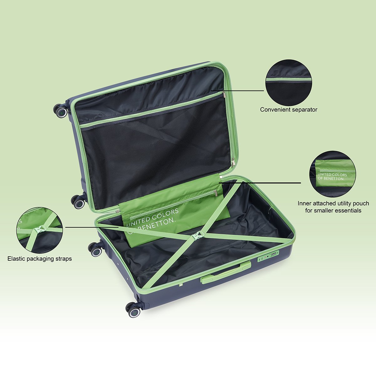 Introducing the United Colors Of Benetton's Opal Unisex Travel Gear, your ideal companion for travel. Crafted from durable Polypropylene material, this luggage features a practical design, ensuring durability and style.