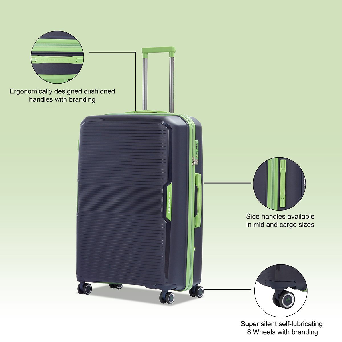 This luggage is not only functional but also practical, with two compartments, three pockets, and eight zips in total, allowing you to organize your belongings efficiently. The eight double-wheeled design ensures smooth mobility, making it effortless to navigate through crowded airports or busy streets.