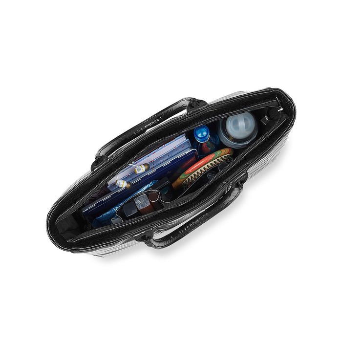 Experience luxury with the Viola Tote from the esteemed United Colors of Benetton. This handbag stands out with its unique croco-textured pattern, further enhanced by a shiny nickel trim. The inner lining, crafted from durable polyester twill, ensures the bag's longevity. Its secure zipper closure, complemented by two zips and four inner pockets, offers a structured space for all your essentials. Made of premium PU, the tote is adorned with a UCB logo and a distinctive knot logo, while the elegant PU strap handles add a touch of finesse. Whether for daily use or special occasions, the Viola Tote is a symbol of Benetton's dedication to style and quality.